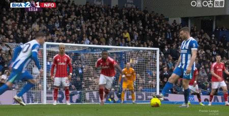 第15分钟,维尔贝克禁区内劲射破门再次超出比分,布莱顿2-1诺丁汉森林