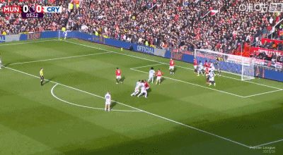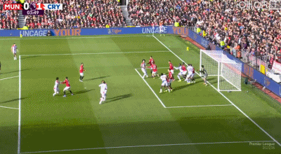 第4分钟,约罗盯人不紧,拉克鲁瓦角球头球顶进死角,水晶宫1-0领先曼联