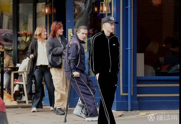 据报道,当地时间本周日,格拉利什被拍到穿着保护靴、拄着拐杖外出,随后有两名球迷请求和他合照,他也答应了,随后拄拐离开。